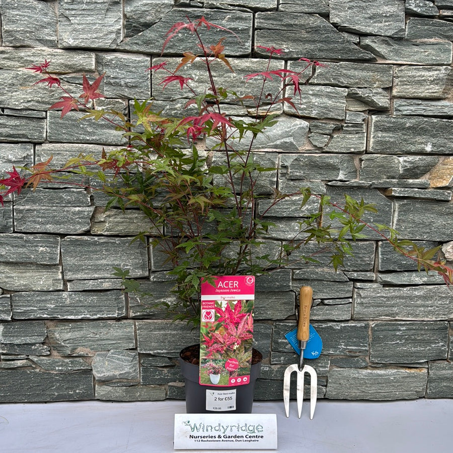 'Beni-maiko' is a upright to rounded, compact, slow-growing, deciduous shrub or small tree with rounded, deeply-lobed leaves opening bright red in spring, fading to reddish-pink, turning green by summer and orange in autumn.