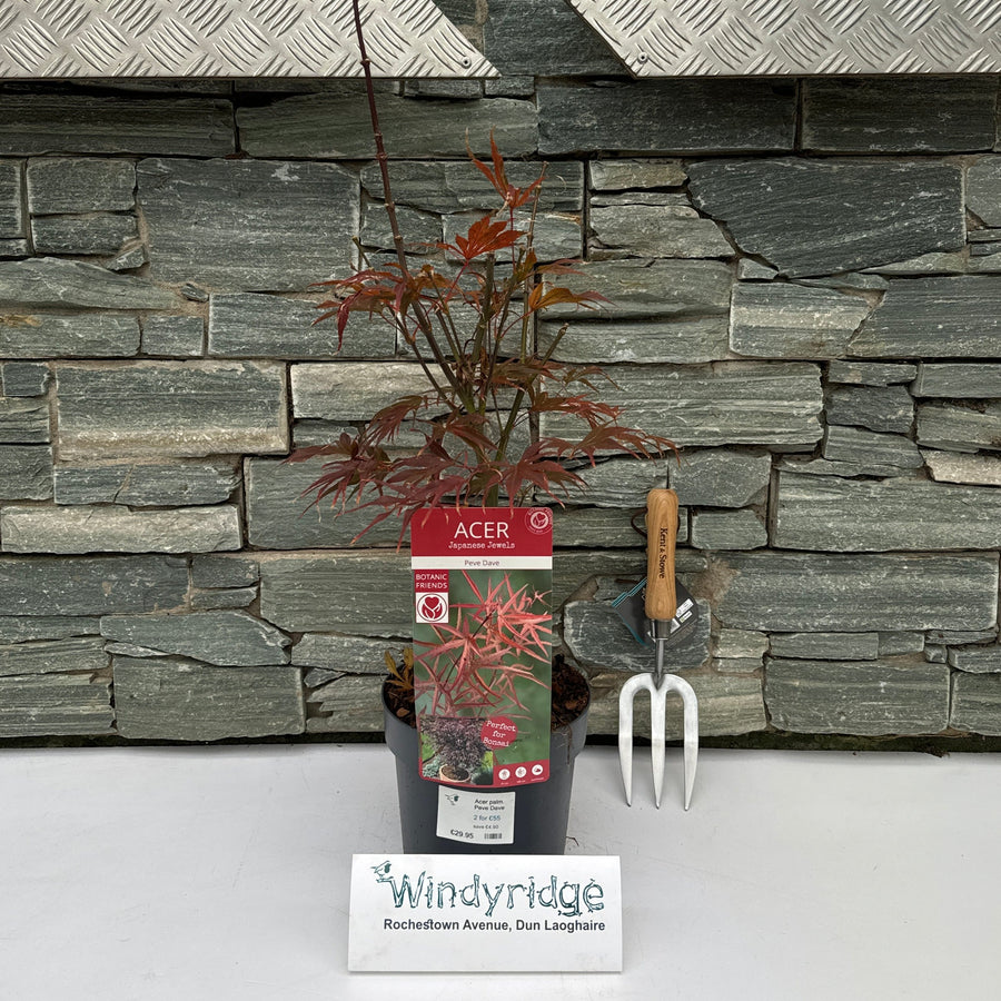 Acer palmatum 'Peve Dave,' commonly known as Peve Dave Japanese Maple, is a beautiful and sought-after cultivar of the Acer palmatum species. It is a popular choice for gardeners in the Irish climate due to its stunning appearance and adaptability.