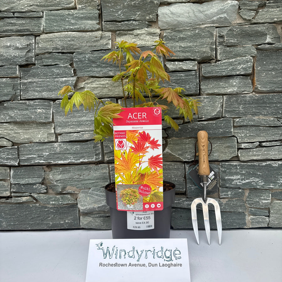 Height/Spread: Moonrise Full Moon Maple typically reaches a height of 15-20 feet (4.5-6 meters) with a spread of 10-15 feet (3-4.5 meters), making it suitable for medium-sized gardens in Ireland.