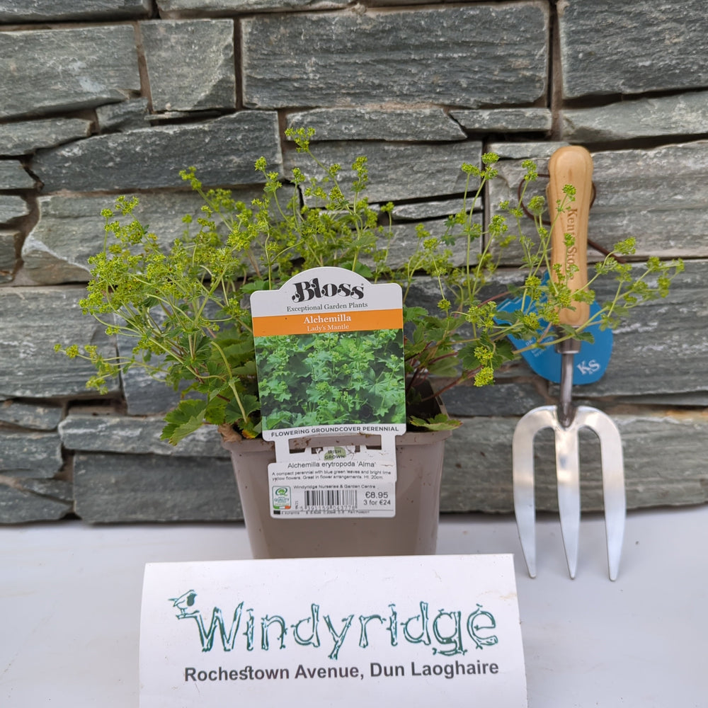Alchemilla erytropoda Alma, commonly known as Alma Lady's Mantle, is a delightful perennial herbaceous plant that thrives in the Irish climate. With a compact and clumping habit, it adds a touch of elegance to garden borders and rockeries.