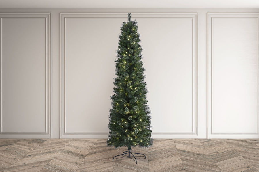 BRAMPTON PINE - 7.5ft Tree with 250 Warm White LED 5mm bulbs and NEW 8 Function