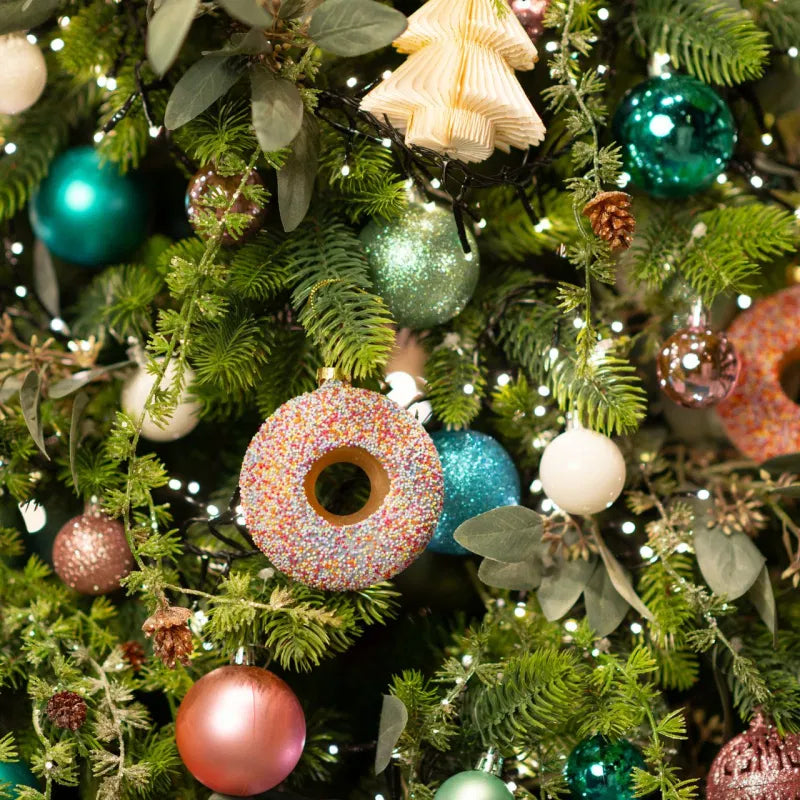 Christmas hanger donut made of glass, colorful 9x9x3cm