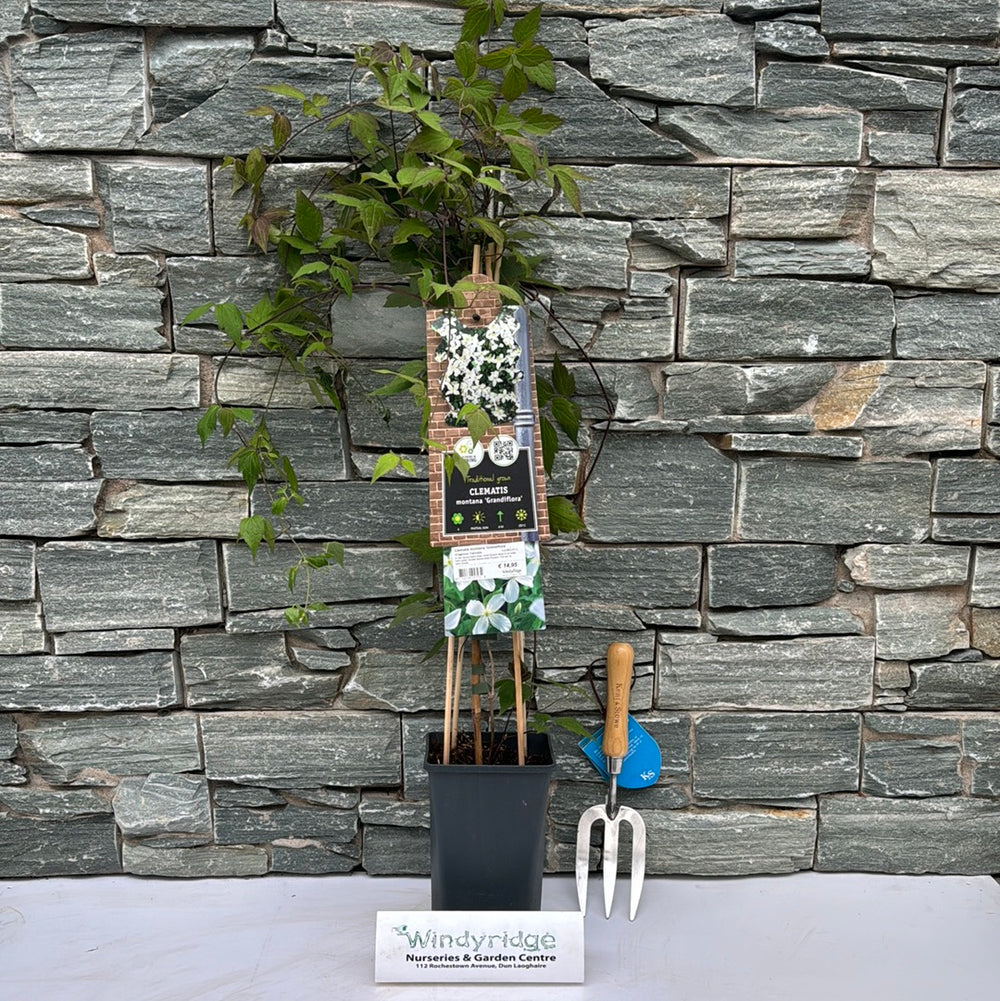 Clematis armandii Snowdrift 2 Ltr Pot single cane
