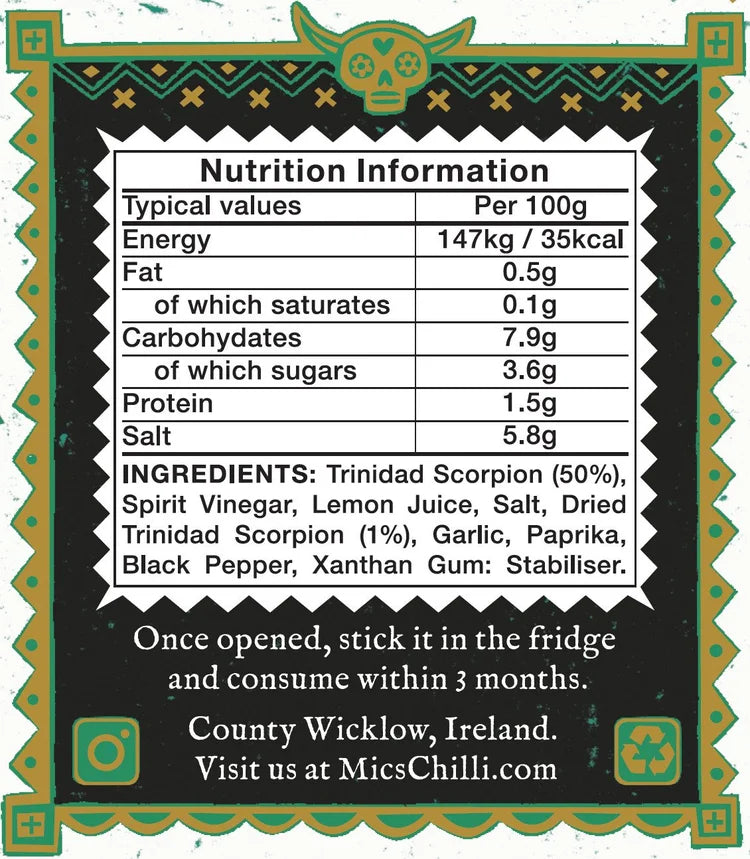 Feel the fire from this burning beauty, but beware the sting in its tail! This spine tingling hot sauce contains over 50% Trinidad Scorpion chilli for a burnin’ flavour full of Caribbean swagger!
