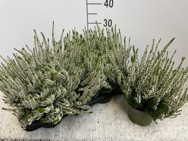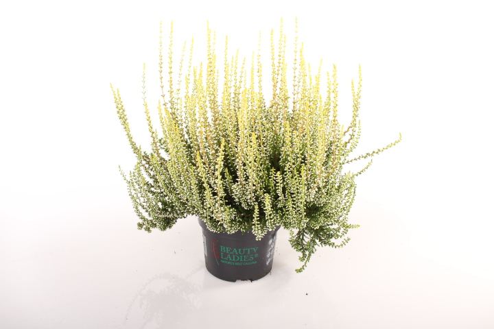 Potted Calluna vulgaris 'Beauty Ladies White'Common Name: Beauty Ladies White Heather