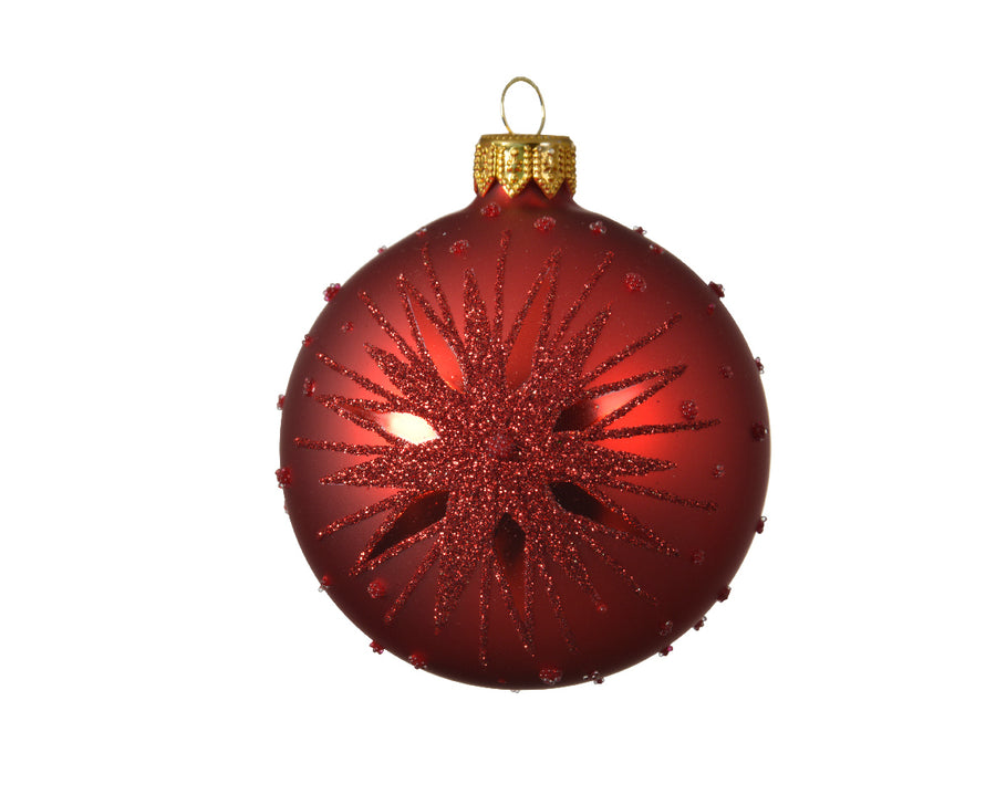 Bauble glass matt snowflake Christmas red