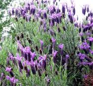 Its broad rootstock bears woody branches with upright, rod like, leafy, green shoots. A silvery down covers the gray green narrow leaves, which are oblong and tapered, attached directly at the base, and curled spirally. The oil in lavender's small, blue violet flowers gives the herb its fragrant scent.