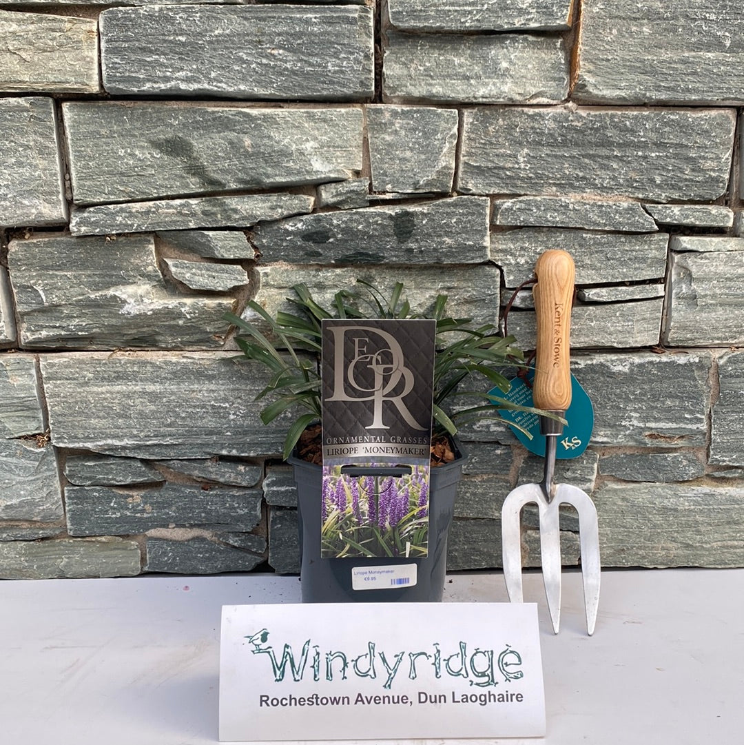 'Moneymaker' is an evergreen perennial, forming clumps of grass-like leaves. It produces dense spikes of purple flowers in late summer.