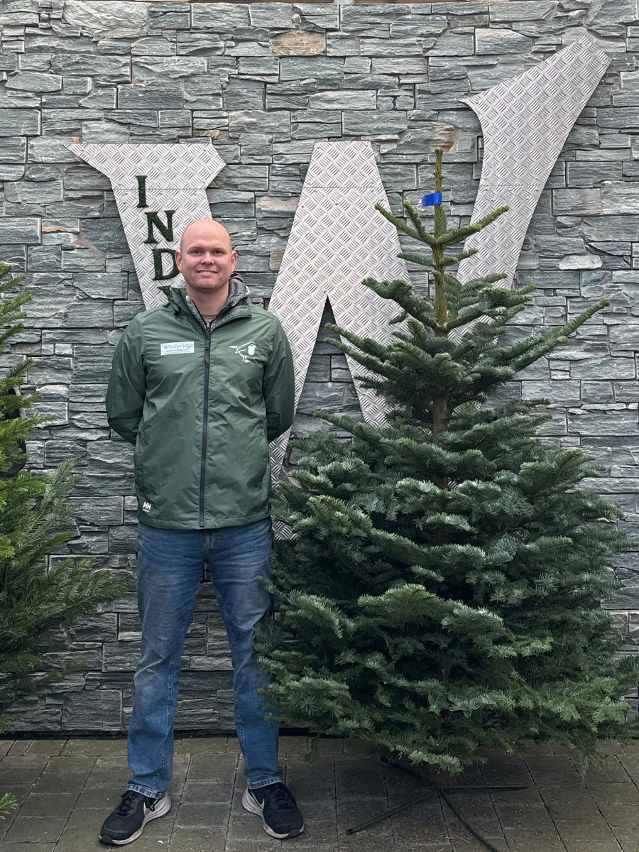 • Cut 1–2cm off the base before placing it in the stand — this opens the pores so the tree can drink. We can do this for you in store.