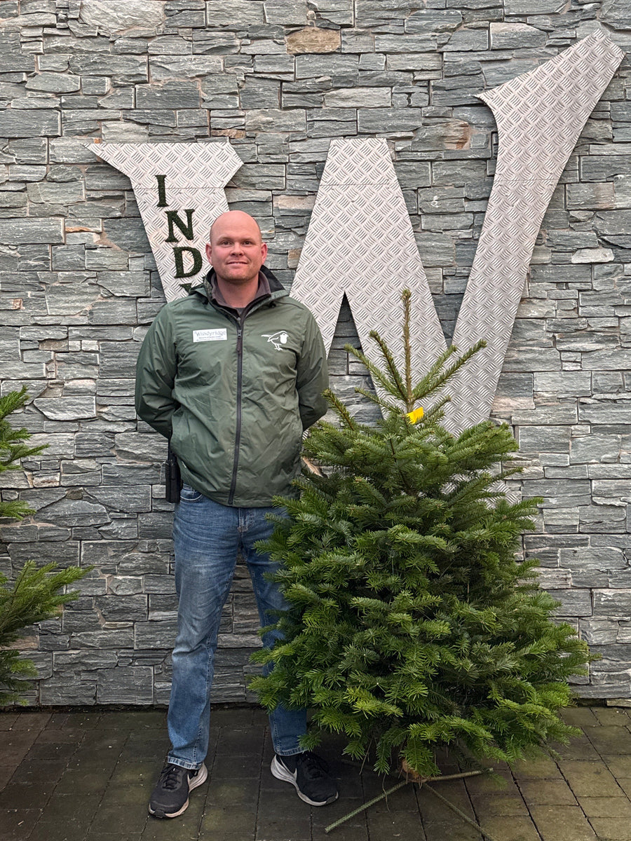 • Cut 1–2cm off the base before placing it in the stand — this opens the pores so the tree can drink. We can do this for you in store.