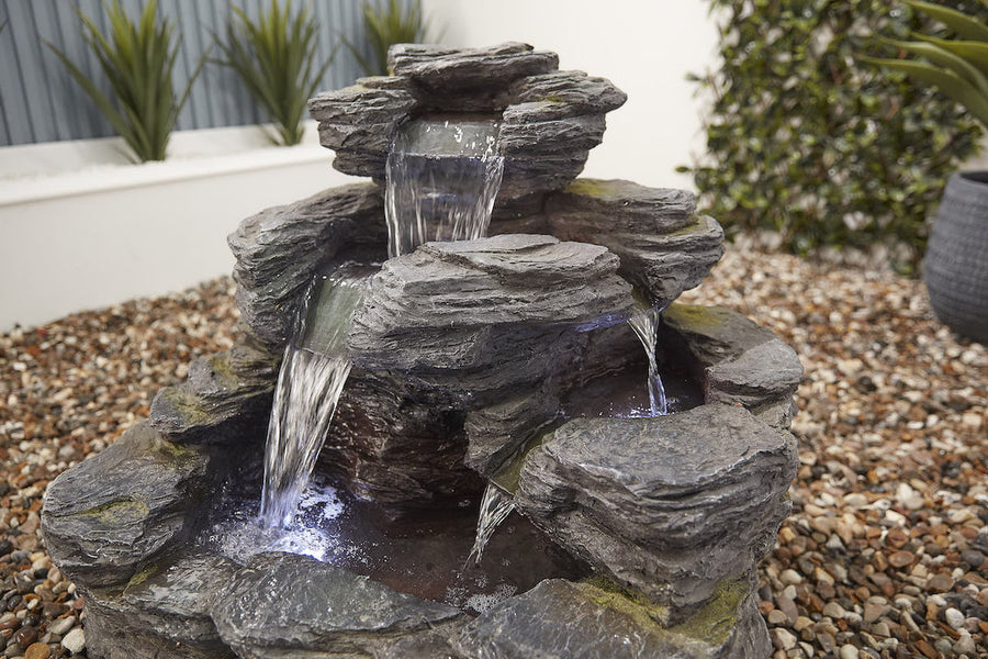 Buddha head as a water feature, 28x23x34cm, cast stone, hollow with reservoir