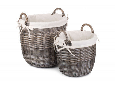 Scoop Neck Antique Wash Hessian Lined Basket Large