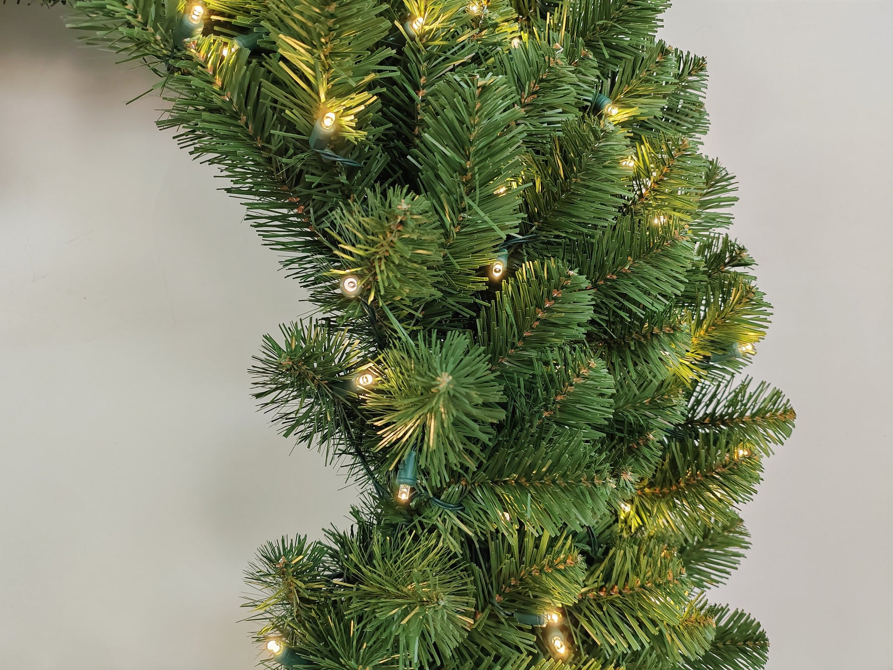 Create a welcoming festive display with this beautifully full Evergreen Pre-Lit Wreath. Measuring 48 inches in diameter, it features lush, lifelike green foliage and 200 warm white LED bulbs for a cosy Christmas glow. The lights include an 8-function setting, allowing you to choose from gentle twinkles to steady illumination — perfect for any holiday mood. Battery operated for easy placement, it’s ideal for doors, walls, or above fireplaces.